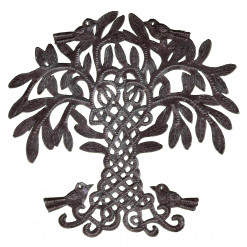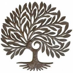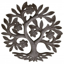 The 17" Symmetry Tree is hand-chiseled out of recycled steel oil drums by Haitian artisans.
