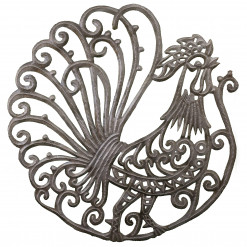 The 16.5" x 17" Rooster is hand-chiseled out of recycled steel oil drums by Haitian artisans.