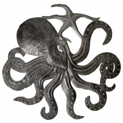 The 23" Octopus is hand-chiseled out of recycled steel oil drums by Haitian artisans.