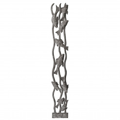The 5" x 33.5" Vertical Fish In Seaweed is hand-chiseled out of recycled steel oil drums by Haitian artisans.