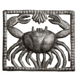 The 5.5" x 4.75" Crab Rectangle is hand-chiseled out of recycled steel oil drums by Haitian artisans.
