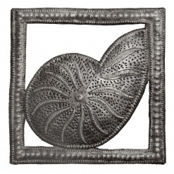 The 5.125" Nautilus Shell Square is hand-chiseled out of recycled steel oil drums by Haitian artisans.
