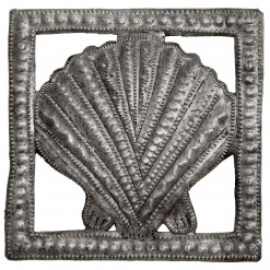 The 5.125" Scallop Shell Square is hand-chiseled out of recycled steel oil drums by Haitian artisans.