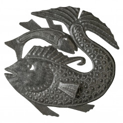 The 10.5" Fish & Coral is hand-chiseled out of recycled steel oil drums by Haitian artisans.