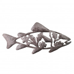 The 12" x 5.5" Flower Fish is hand-chiseled out of recycled steel oil drums by Haitian artisans.