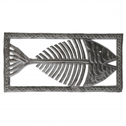The 20" x 10" Fish Bones is hand-chiseled out of recycled steel oil drums by Haitian artisans.