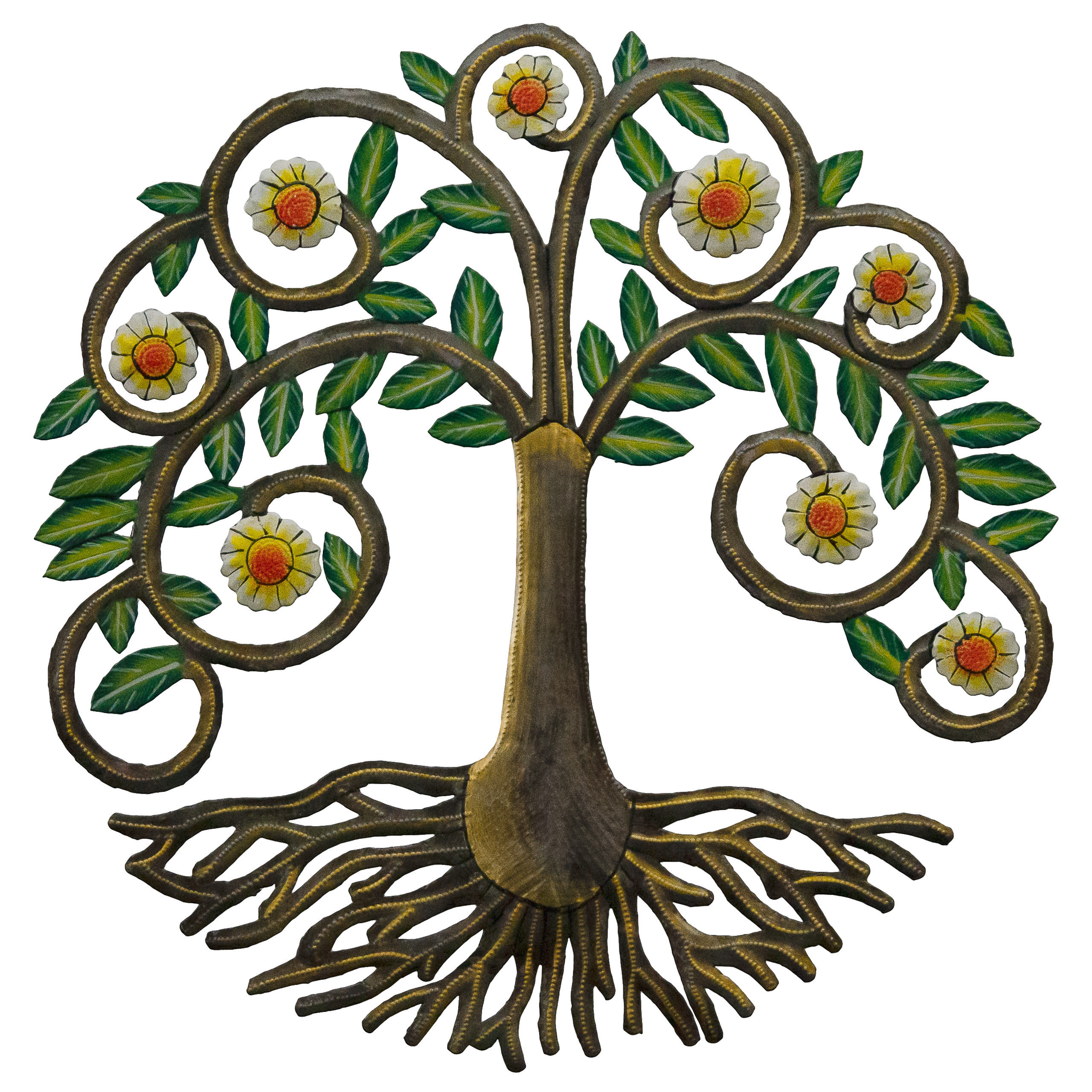 Perfect for home or garden, each Painted Yellow Bloom Tree of Life is approximately 15″ x 15″ x 0.5″ and hand-chiseled out of recycled steel oil drums by Haitian artisans using techniques first developed by Georges Liautaud in the late 1950s when he chalked out his first design on a flattened steel oil drum and then cut it out by hand with a mallet and chisel. As each piece is handmade, their final dimensions and finish may vary slightly.
