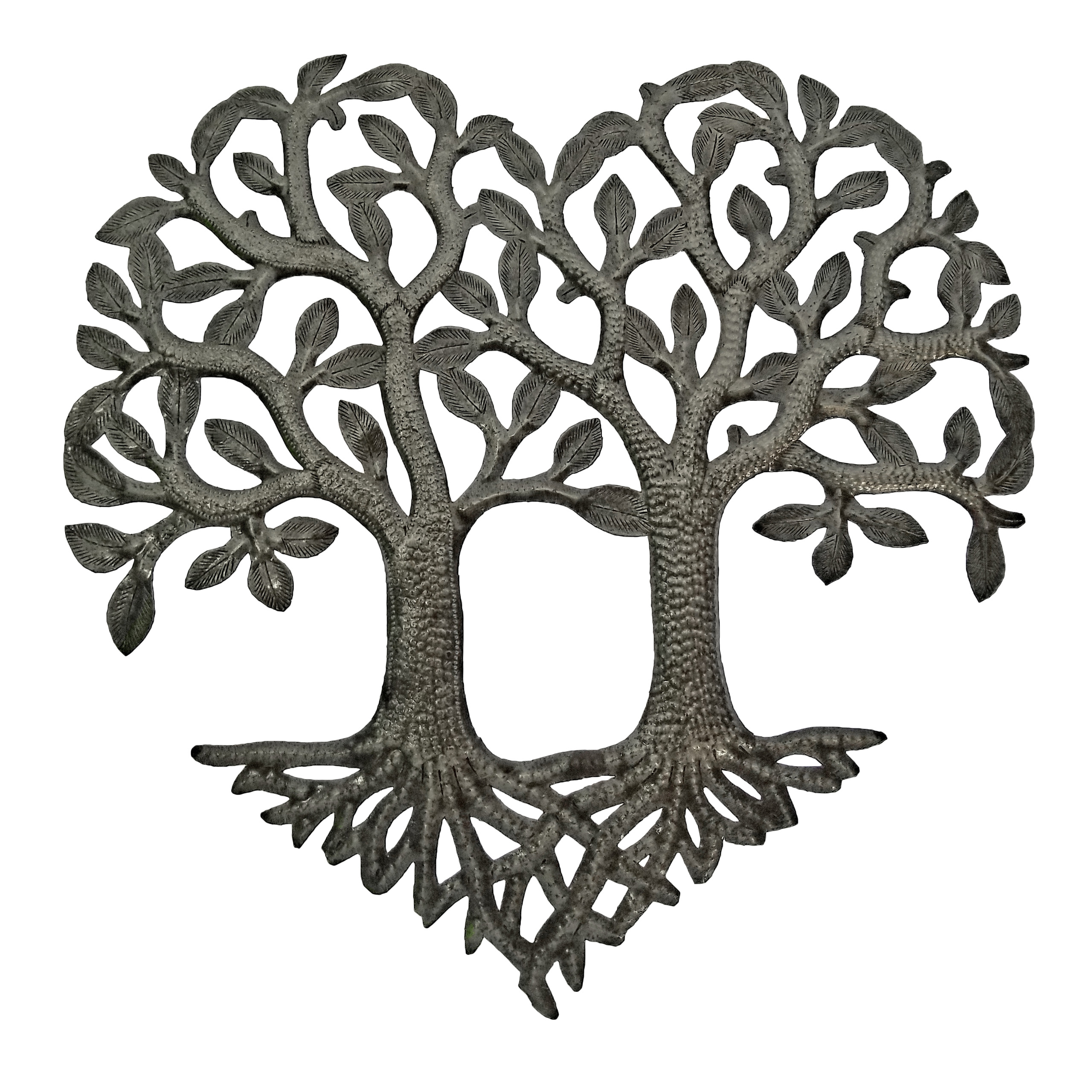Perfect for home or garden, each Heart of Trees is approximately 18″ x 18″ x 0.5″ and hand-chiseled out of recycled steel oil drums by Haitian artisans using techniques first developed by Georges Liautaud in the late 1950s when he chalked out his first design on a flattened steel oil drum and then cut it out by hand with a mallet and chisel. As each piece is handmade, their final dimensions and finish may vary slightly.
