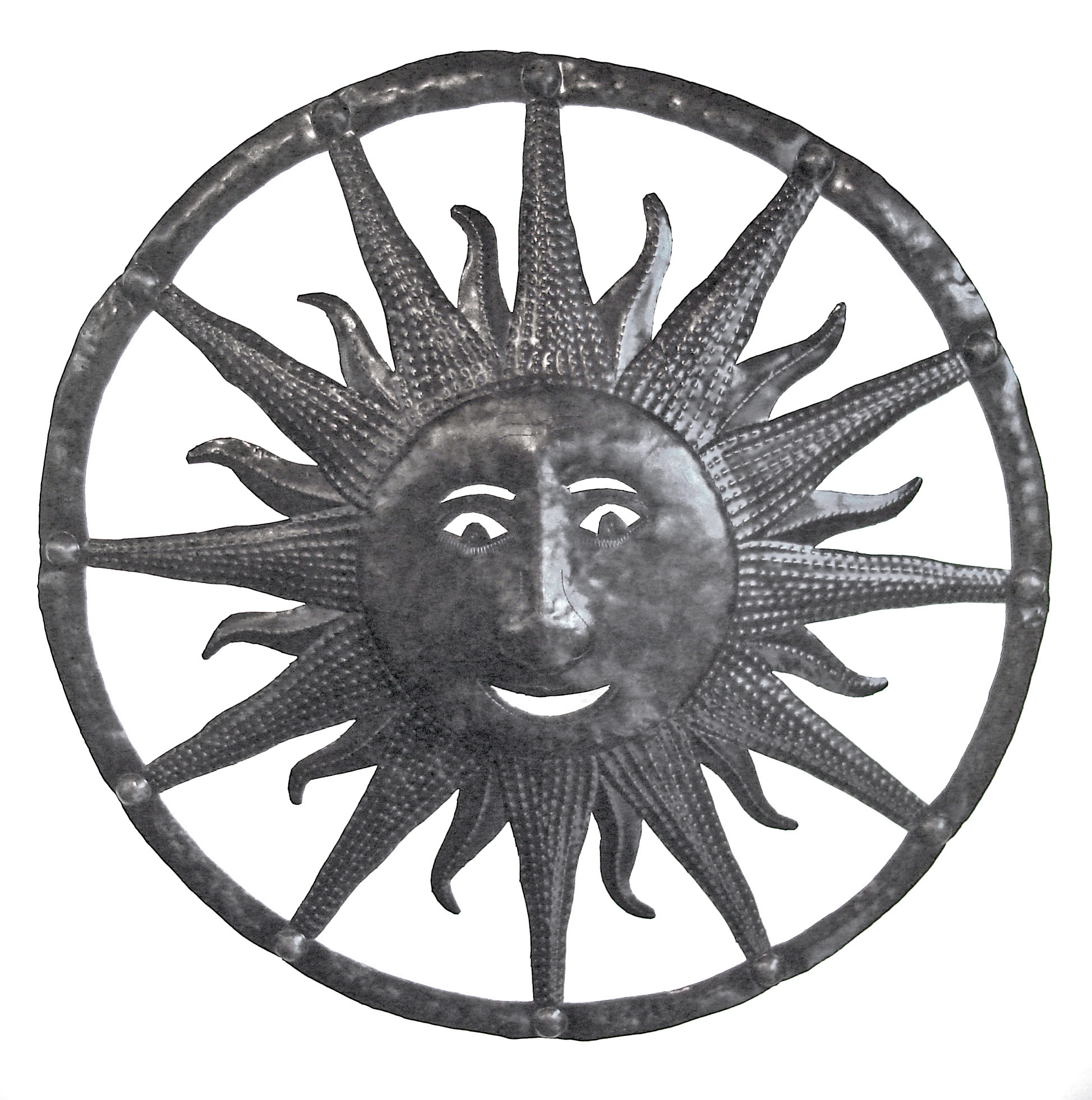 The 23" Sun with Birds is hand-chiseled out of recycled steel oil drums by Haitian artisans.