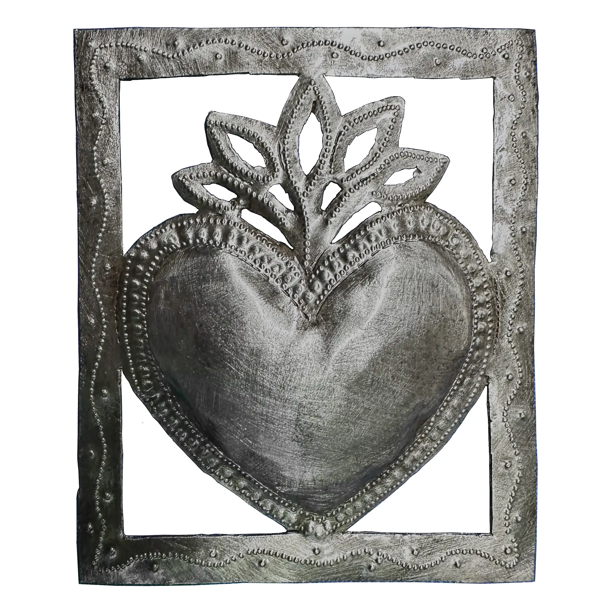 Perfect for home or garden, each Heart Rectangle is approximately 5″ x 6″ x 0.5″ and hand-chiseled out of recycled steel oil drums by Haitian artisans using techniques first developed by Georges Liautaud in the late 1950s when he chalked out his first design on a flattened steel oil drum and then cut it out by hand with a mallet and chisel. As each piece is handmade, their final dimensions and finish may vary slightly.