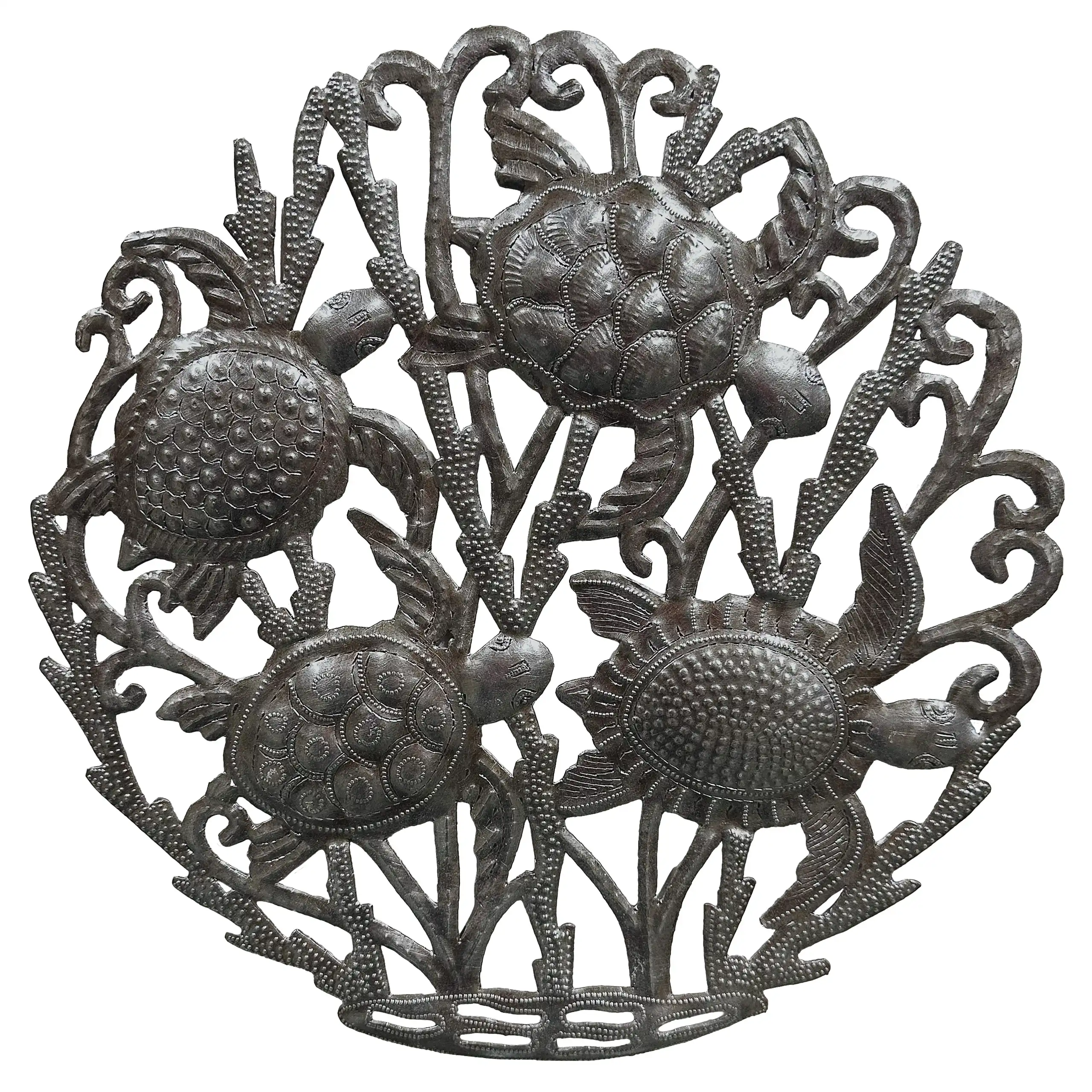 The 23" Turtles is hand-chiseled out of recycled steel oil drums by Haitian artisans.