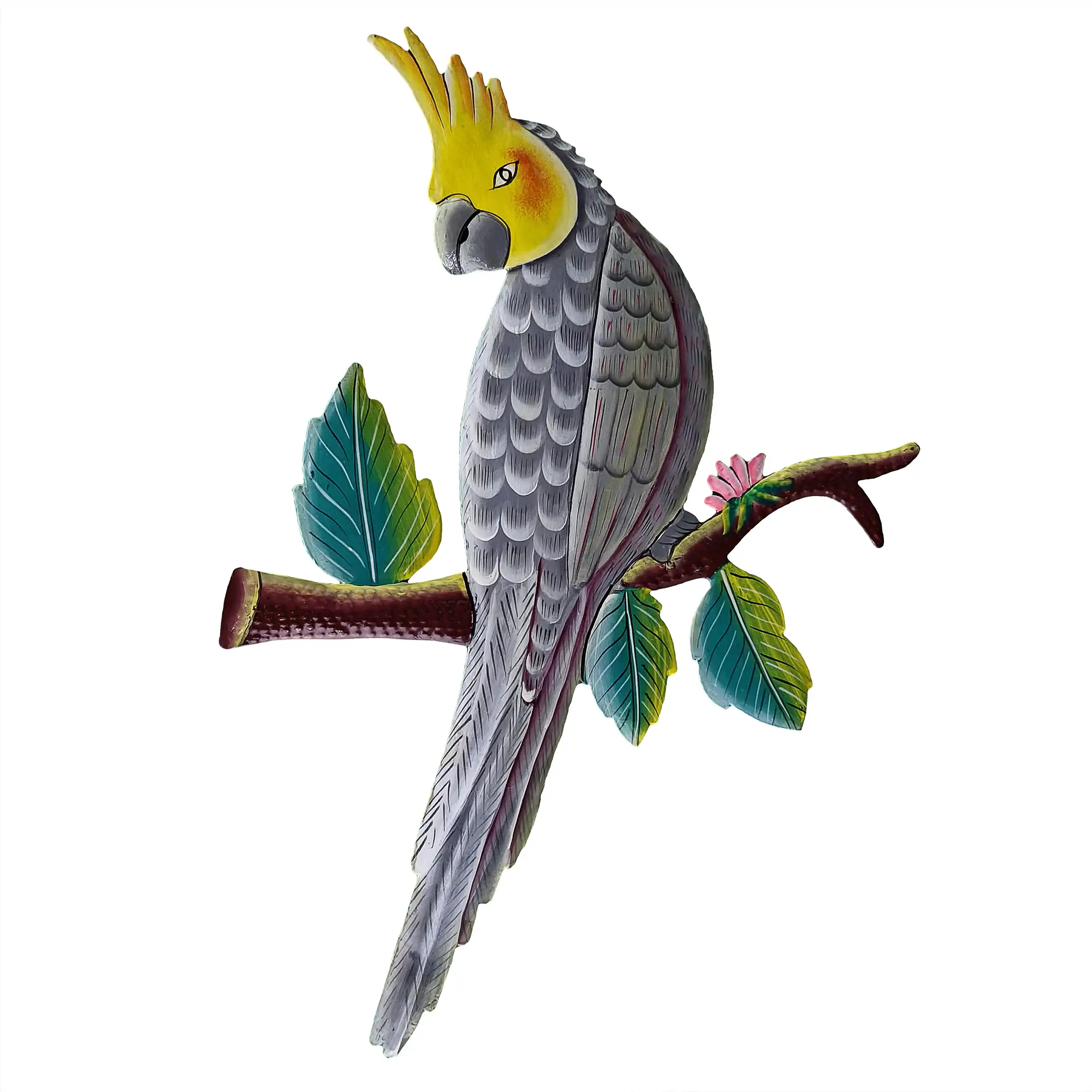 Perfect for home or garden, each Large Painted Cockatiel is approximately 12.5″ x 16.5″ x 0.5″ and hand-chiseled out of recycled steel oil drums by Haitian artisans using techniques first developed by Georges Liautaud in the late 1950s when he chalked out his first design on a flattened steel oil drum and then cut it out by hand with a mallet and chisel. As each piece is handmade, their final dimensions and finish may vary slightly.