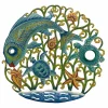 The 13.5" x 20.5" Peacock Contour is hand-chiseled out of recycled steel oil drums by Haitian artisans.