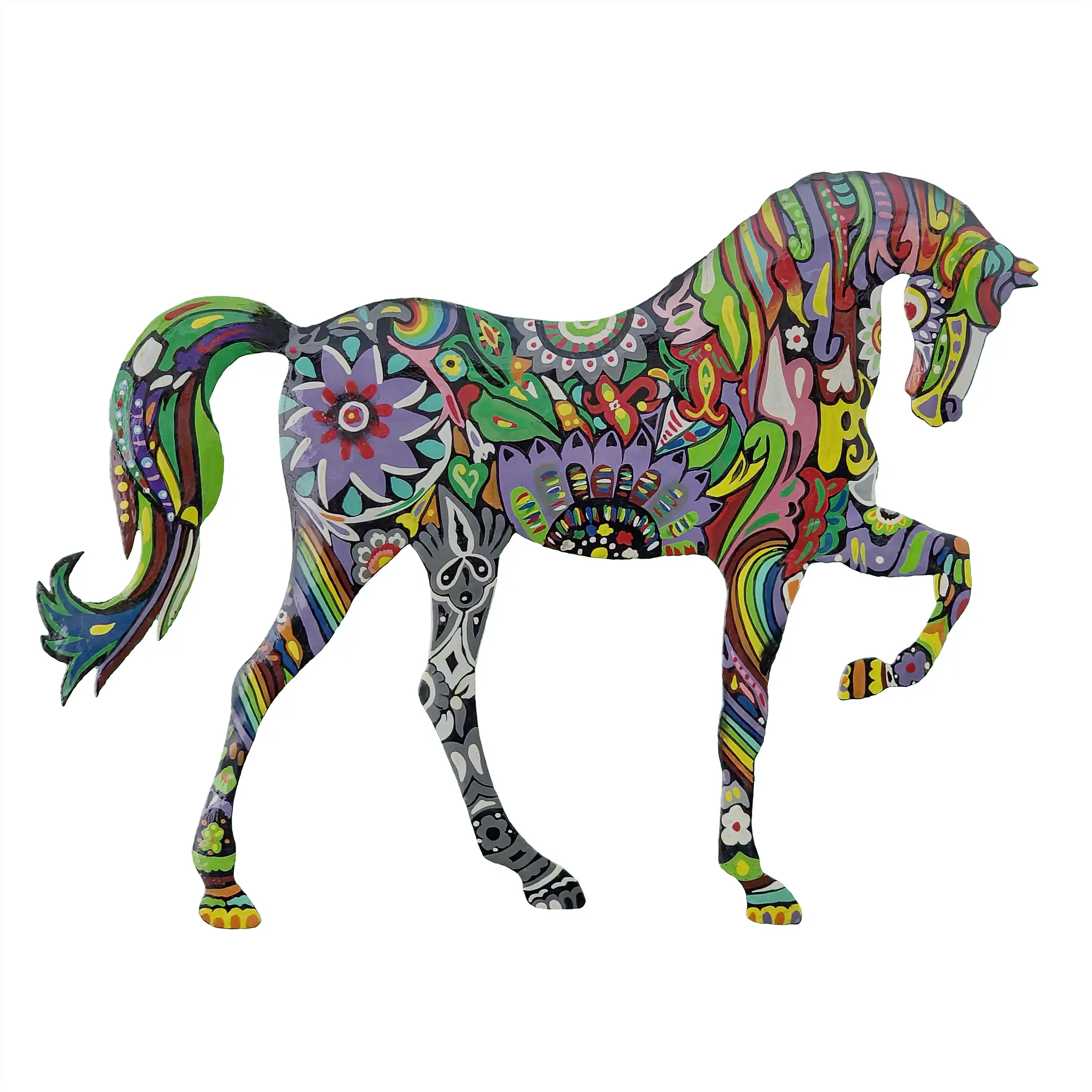 Perfect for home or garden, each Medium Painted Floral Walking Horse is approximately 18″ x 14″ x 0.5″ and hand-chiseled out of recycled steel oil drums by Haitian artisans using techniques first developed by Georges Liautaud in the late 1950s when he chalked out his first design on a flattened steel oil drum and then cut it out by hand with a mallet and chisel. As each piece is handmade, their final dimensions and finish may vary slightly.