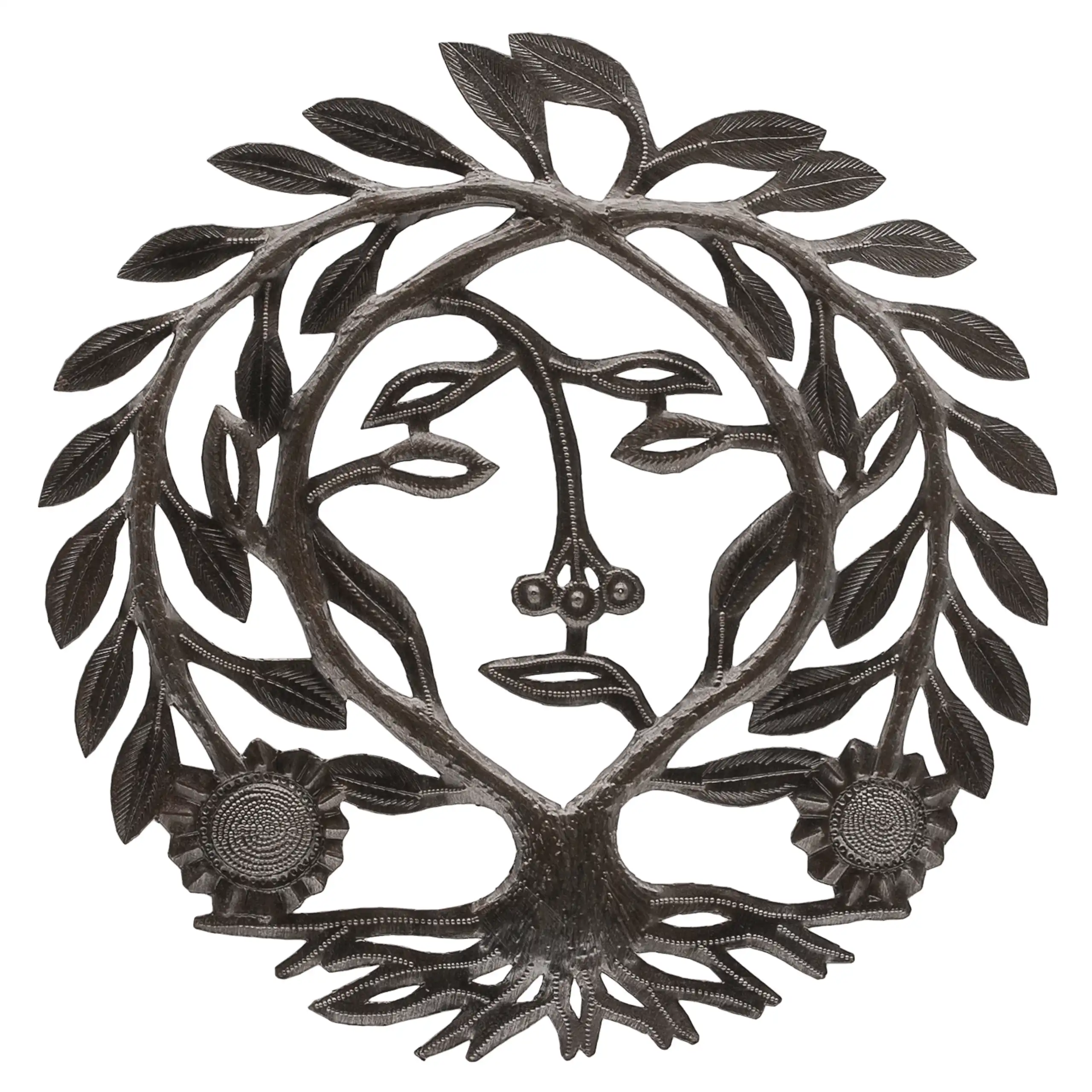 The 8" Collared Sun is hand-chiseled out of recycled steel oil drums by Haitian artisans.