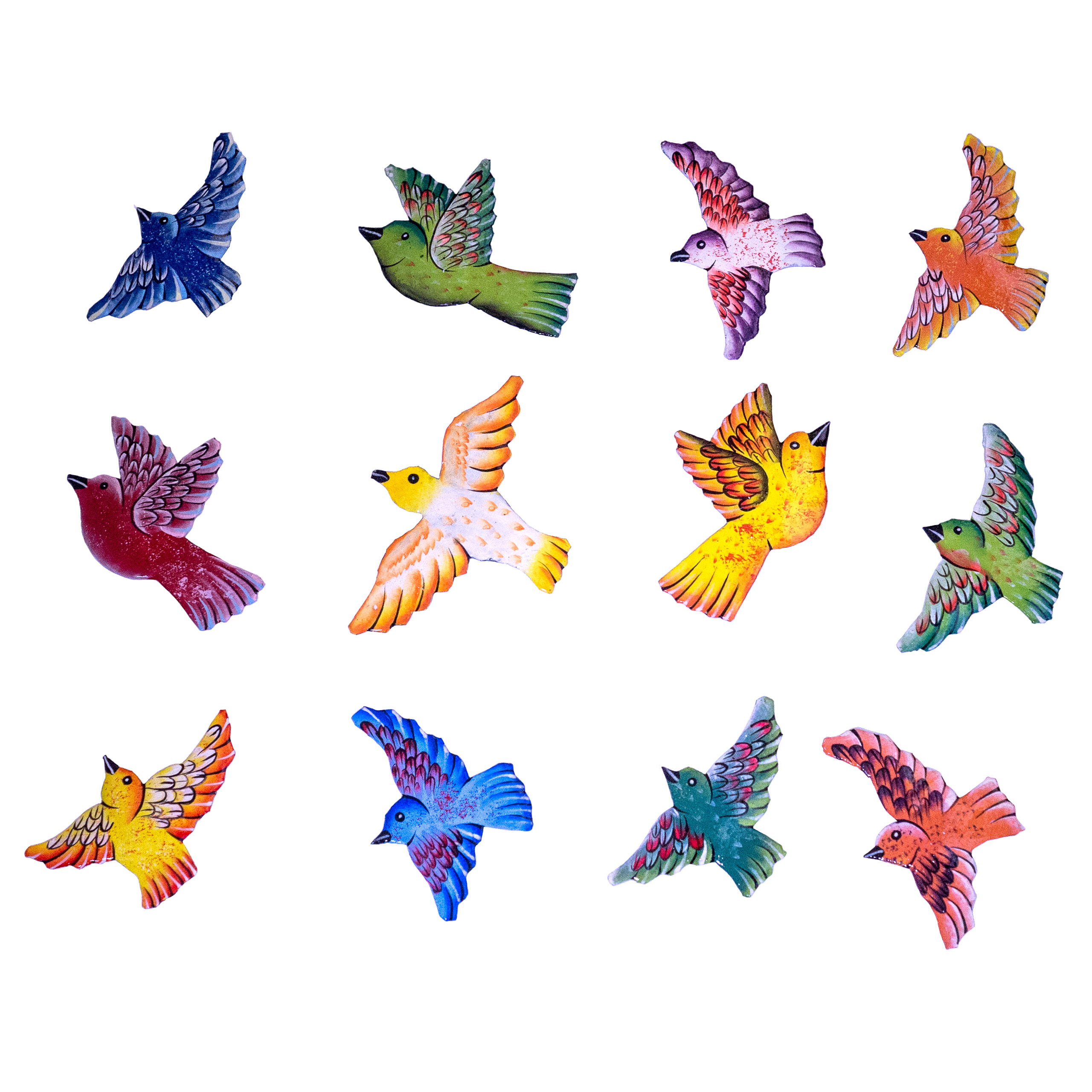 Perfect for home or garden, each Painted Mini Birds – One Dozen is approximately 3″ x 4″ x 0.5″ and hand-chiseled out of recycled steel oil drums by Haitian artisans using techniques first developed by Georges Liautaud in the late 1950s when he chalked out his first design on a flattened steel oil drum and then cut it out by hand with a mallet and chisel. As each piece is handmade, their final dimensions and finish may vary slightly.