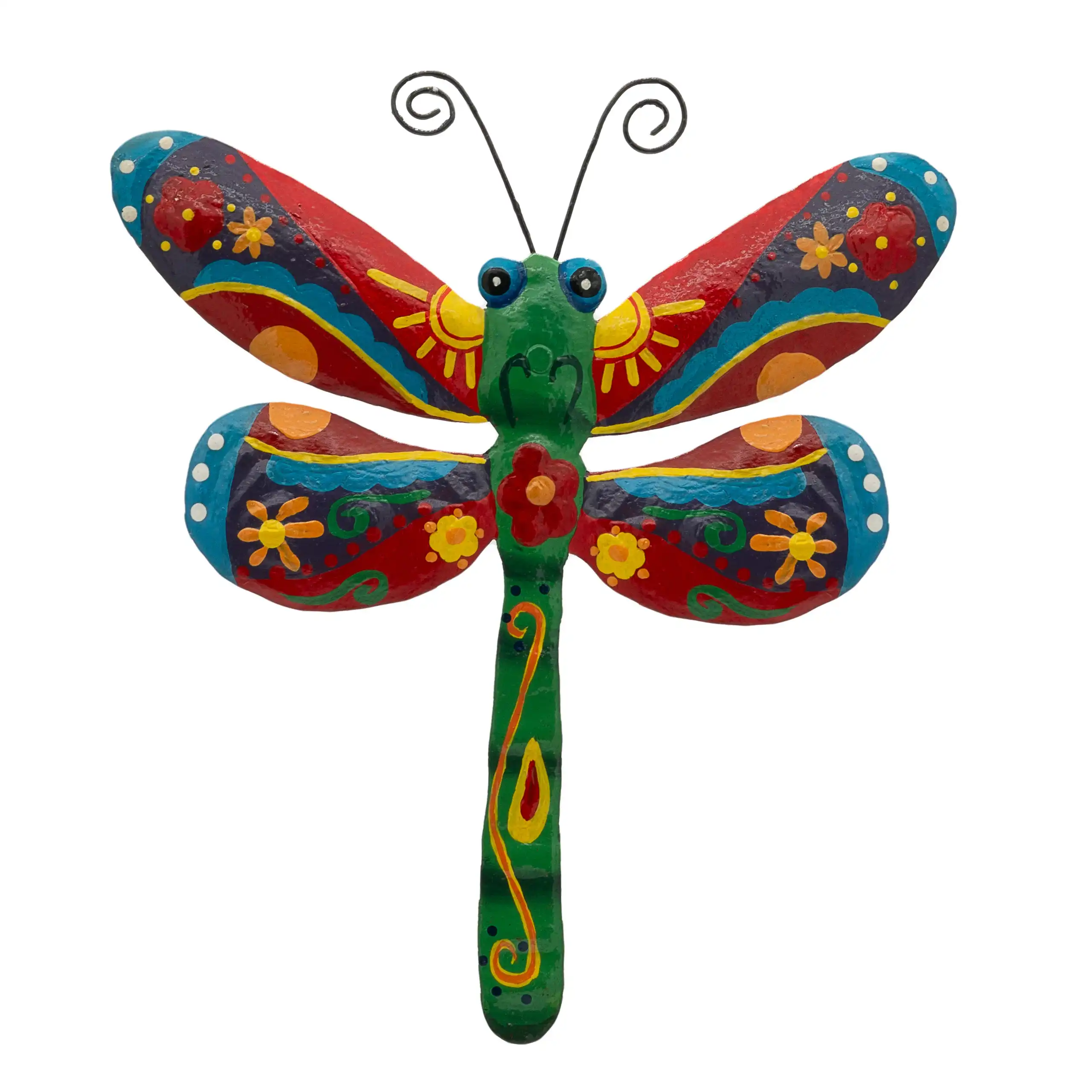 Perfect for home or garden, each Painted Dragonfly is approximately 11.75″ x 11″ x 0.5″ and hand-chiseled out of recycled steel oil drums by Haitian artisans using techniques first developed by Georges Liautaud in the late 1950s when he chalked out his first design on a flattened steel oil drum and then cut it out by hand with a mallet and chisel. As each piece is handmade, their final dimensions and finish may vary slightly.