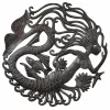 The 6" x 35" Vertical Sea Life is hand-chiseled out of recycled steel oil drums by Haitian artisans.