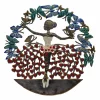 Perfect for home or garden, each Painted North Star Manger is approximately 17″ x 17.5″ x 0.5″ and hand-chiseled out of recycled steel oil drums by Haitian artisans using techniques first developed by Georges Liautaud in the late 1950s when he chalked out his first design on a flattened steel oil drum and then cut it out by hand with a mallet and chisel. As each piece is handmade, their final dimensions and finish may vary slightly.