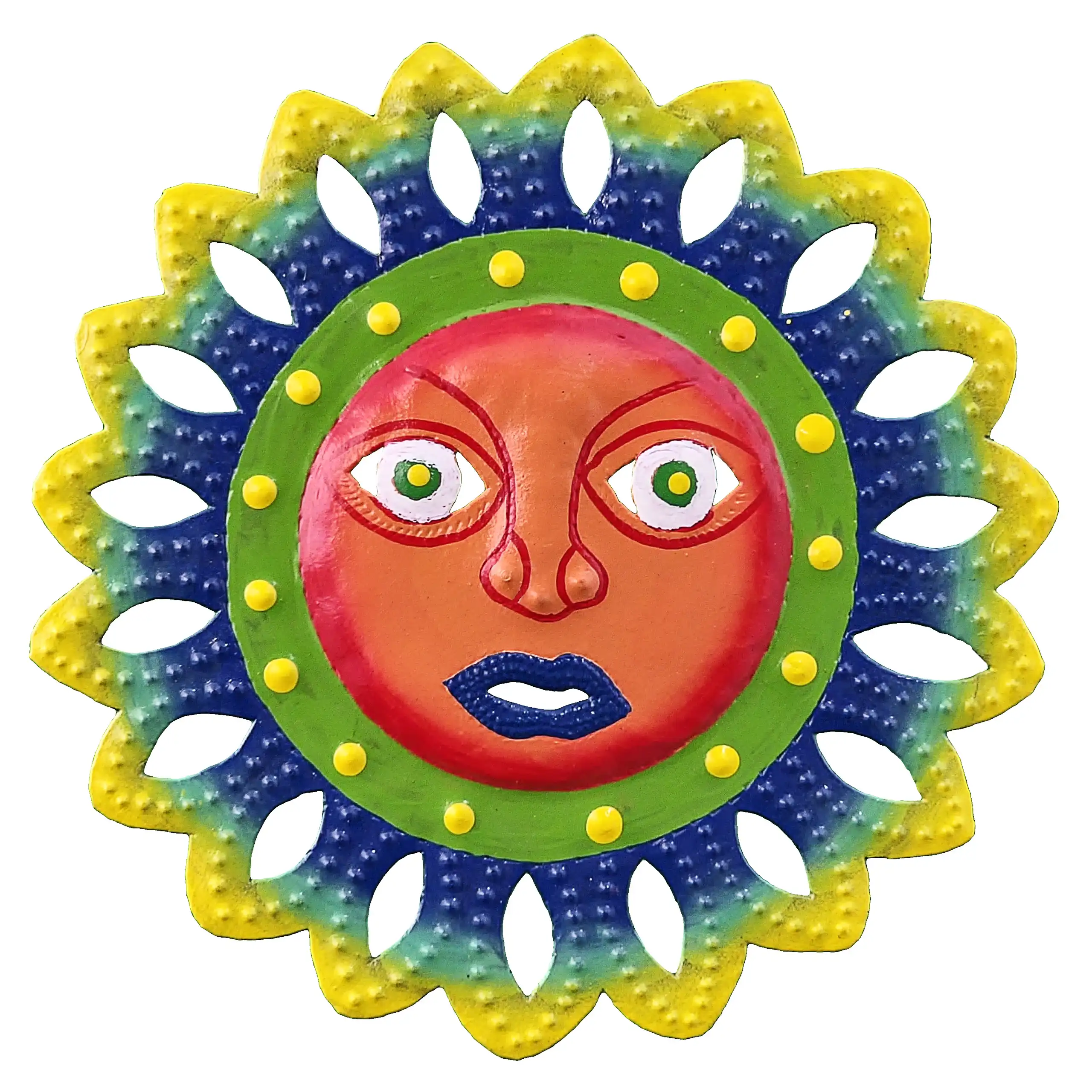 The 6.5" x 8.5" Moon & Sun is hand-chiseled out of recycled steel oil drums by Haitian artisans.