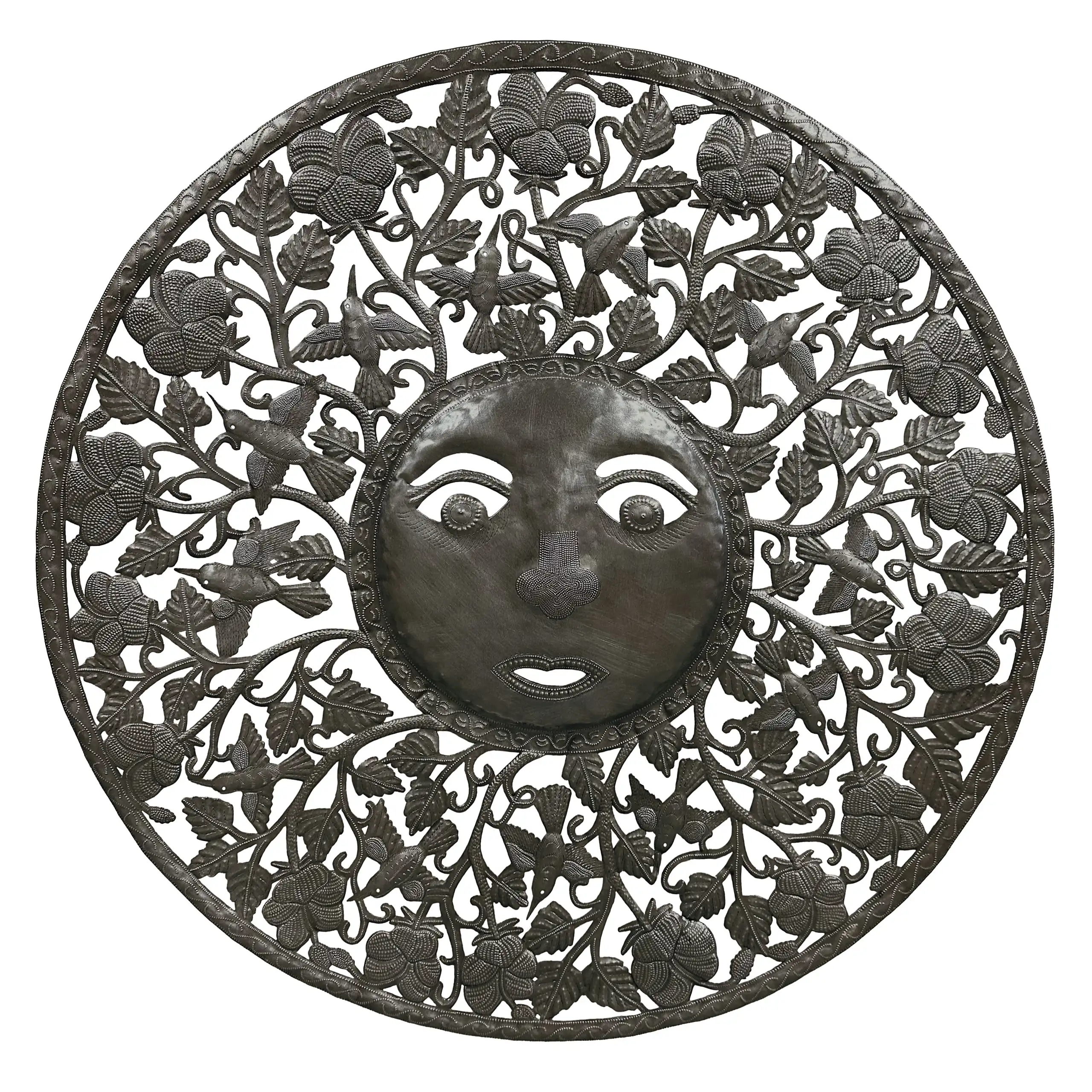 The 6.5" x 8.5" Moon & Sun is hand-chiseled out of recycled steel oil drums by Haitian artisans.
