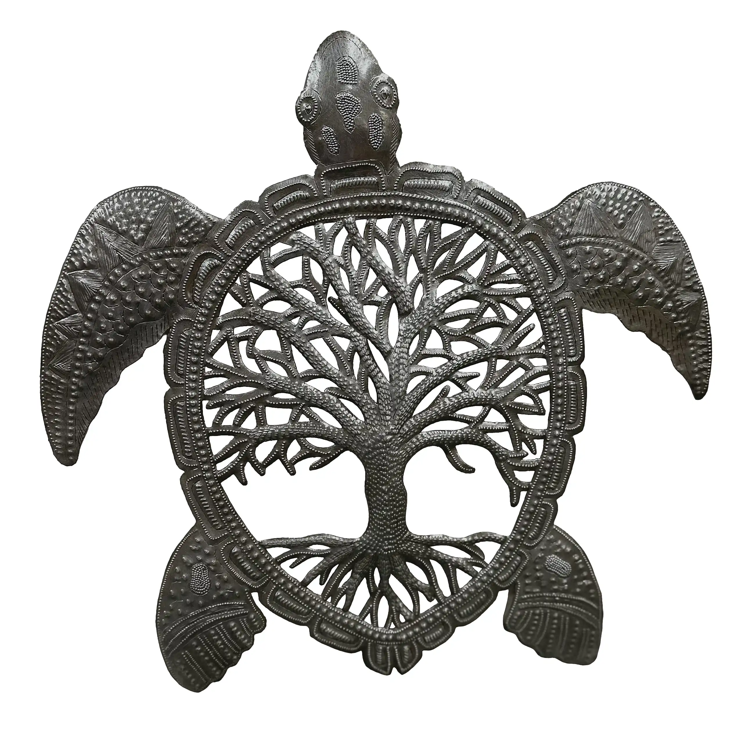 The 23" Turtles is hand-chiseled out of recycled steel oil drums by Haitian artisans.