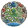 The 13.5" x 20.5" Peacock Contour is hand-chiseled out of recycled steel oil drums by Haitian artisans.