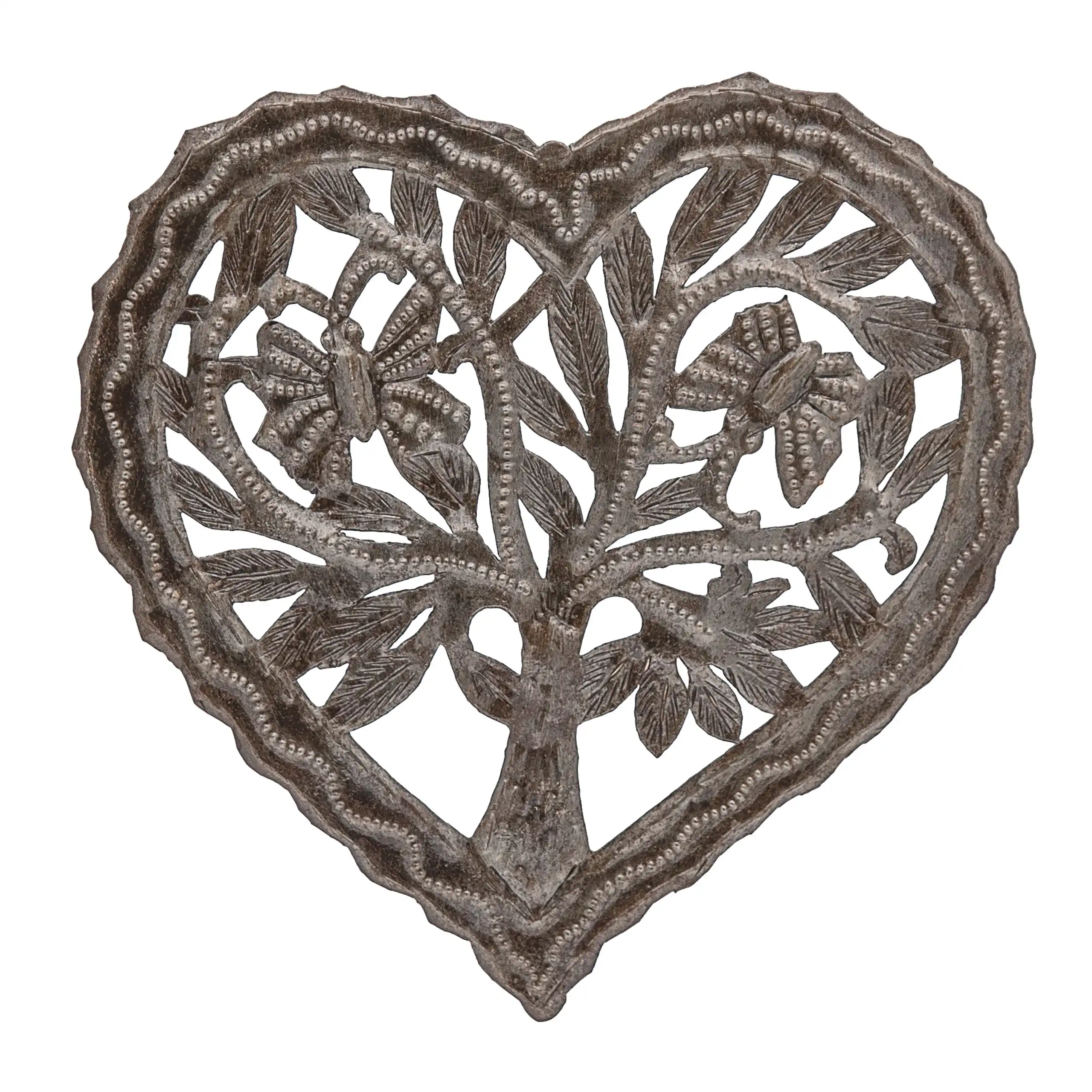 The 13" Medium Heart of Hearts is hand-chiseled out of recycled steel oil drums by Haitian artisans.